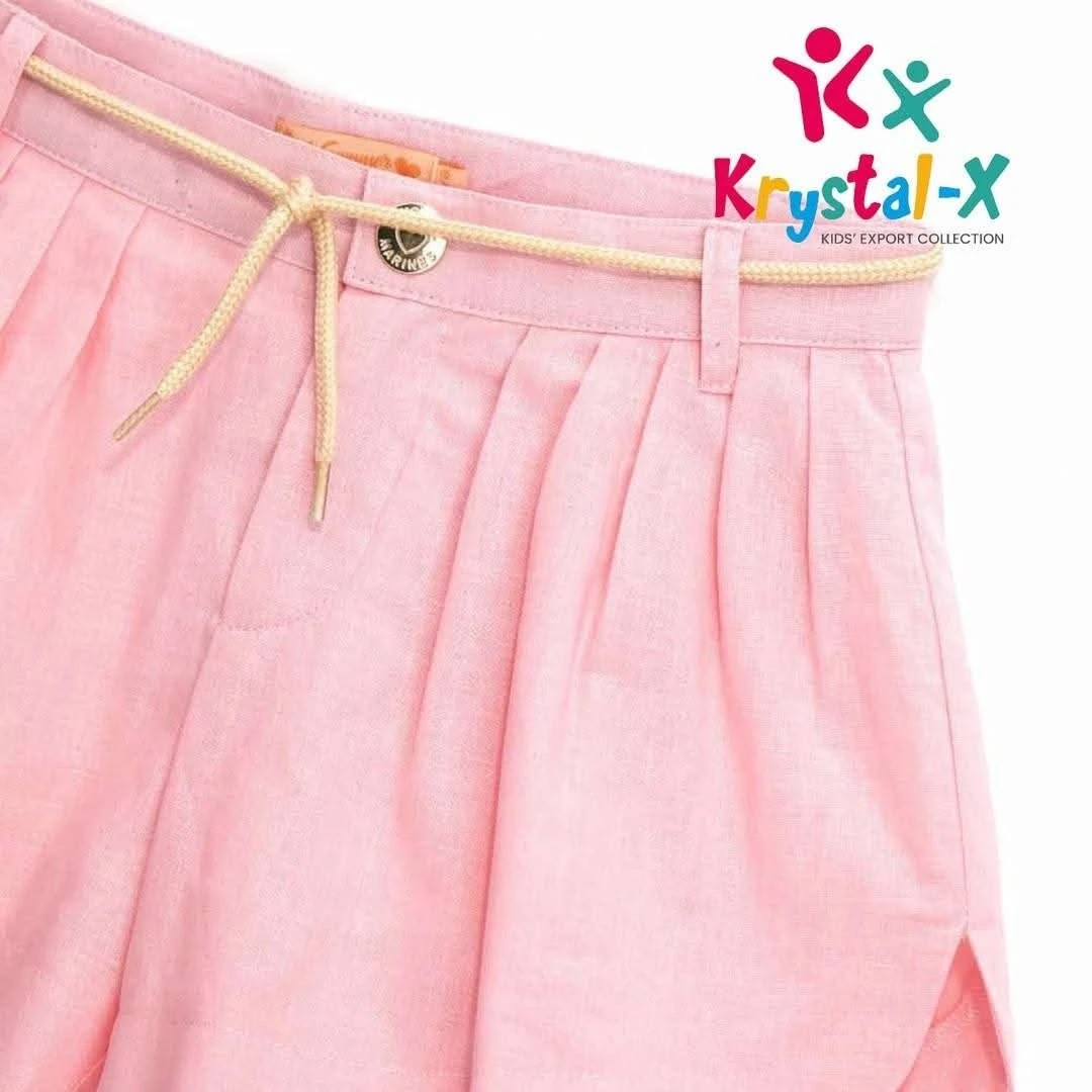 Effortlessly stylish and designed for comfort, our Marine Pleated Shorts are a seasonal must-have. Made from a lightweight, breathable linen-blend fabric, these shorts offer a natural feel that keeps kids cool in the heat. The design features a high-waist silhouette with elegant front pleats, a curved hem for mobility, and a decorative drawstring for a nautical touch. Whether paired with a simple tee or a dressy blouse, these shorts are ready for any sunny adventure.Fabric: Breathable Cotton-Linen Blend